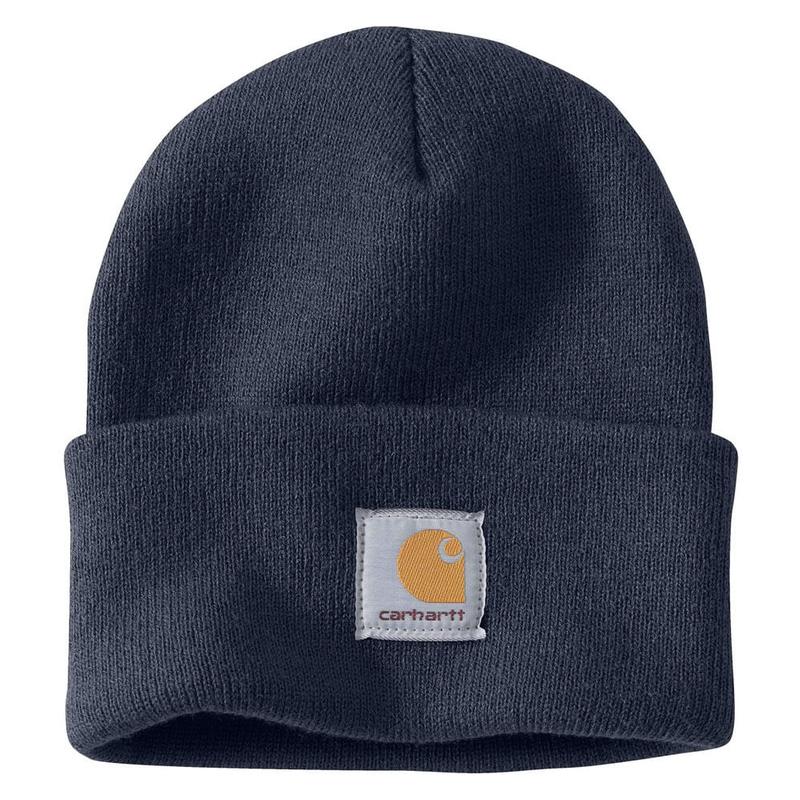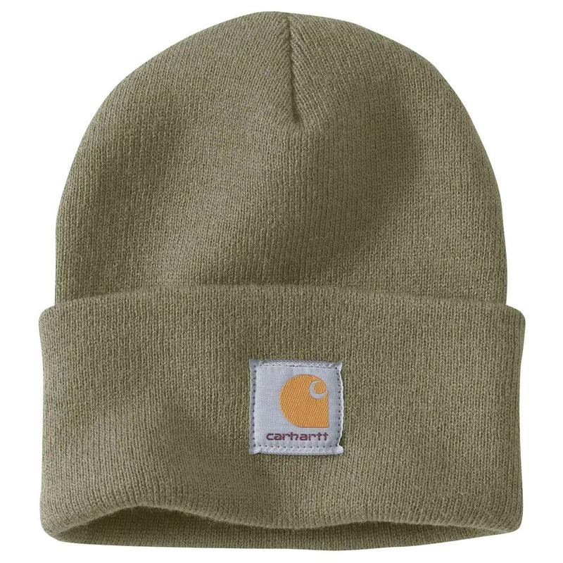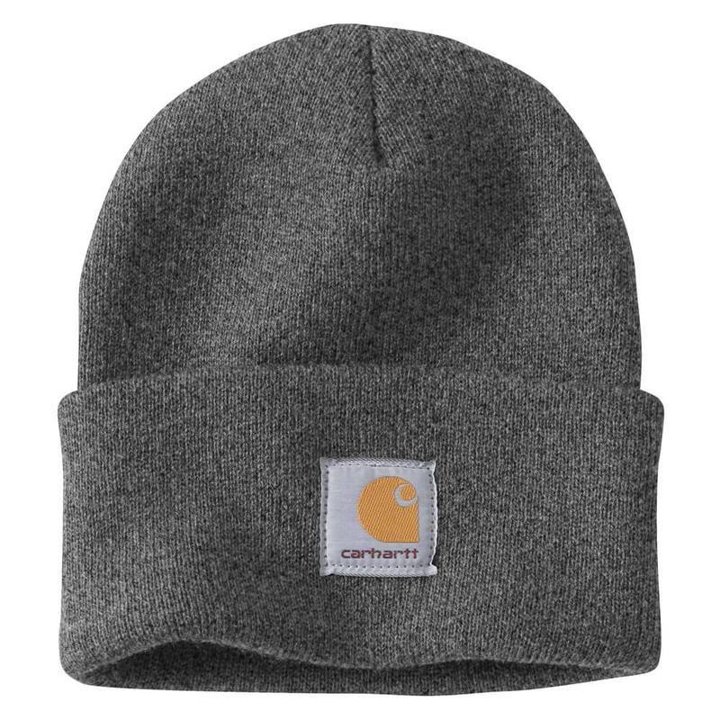 Here's a Carhartt favorite: A 100% acrylic rib-knit Watch Hat. Carhartt customers have been counting on this knit favorite for years. It's a comfortable one-size-fits-all that knows how to keep you warm. The Carhartt logo is featured on the front. The hat comes in many great colors -- something to coordinate with just about any and all of our other workwear -- plus bright lime and bright orange that help you stay in easy sight in darker conditions.